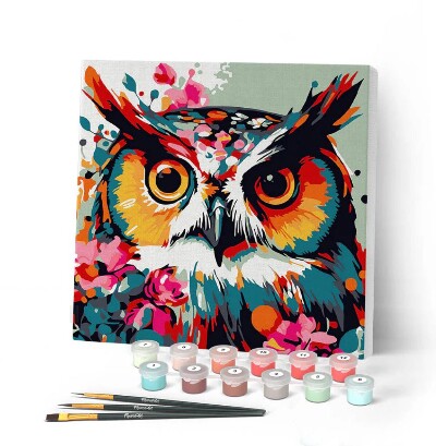 Mini Kit da Dipingere con i Numeri Gufo Fantasy con Fiori